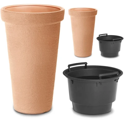 CASARIA® Set of 2 XXL Plant Pots 42 Litre Capacity 40 cm Diameter 63 Height Customisable Drainage Weatherproof & UV Stable Durable Plastic Removable Inner Terracotta