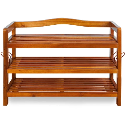 CASARIA® Shoe Rack Up to 120kg 3 Tiers Solid Acacia Wood Rustic Design Hallway, Bathroom, Kitchen Boot Footwear Storage Cabinet Dark Brown 85 x 26 62 cm