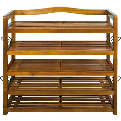 CASARIA® Shoe Rack Up to 200kg 5 Tiers Solid Acacia Wood Rustic Design Hallway, Bathroom, Kitchen Boot Footwear Storage Cabinet Dark Brown 95 x 26 82 cm
