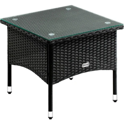 CASARIA® Square Poly Rattan Garden Coffee Side Table Weatherproof With Glass Top 50x50x45cm Height Adjustable Feet Indoor Outdoor Patio Terrace Balcony Conservatory Bistro Black