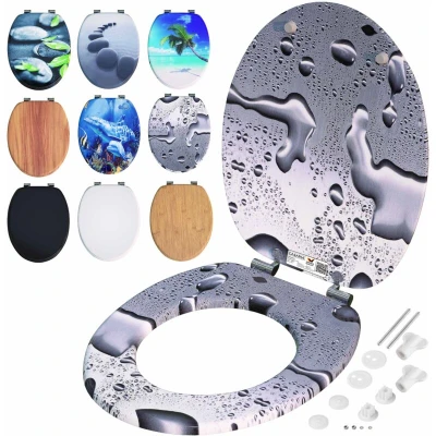 CASARIA® Water Drops Design Double Soft Close Toilet Seat MDF Wood Core Hygienic Stainless Steel Hinges 175kg Capacity Wooden Bathroom Standard D Shape Slow Top Lid Seats