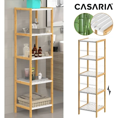 CASARIA Wooden Rack Freestanding Bamboo Shelf Bathroom Kitchen Storage Shelves Natural White Brown Wood