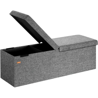 CASARIA® XL Linen Look Foldable Ottoman Chest Bench with Folding Padded Lid 115x40x40cm 131 Litres Decorative Shoe Storage Box Lounge Bedroom Hallway Furniture Dark Grey