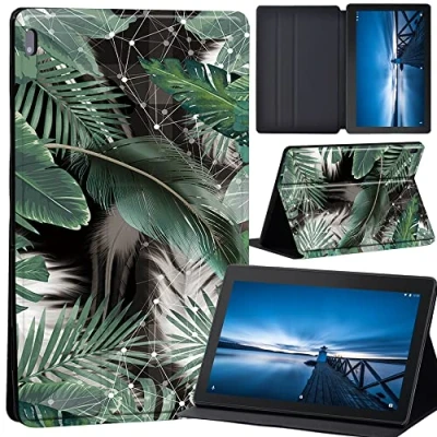 Case for Lenovo Tab M10 TB X605F/ X605L/ X505F/ X505L, Leather Tri Fold Stand Cover 10.1 Inch Tablet, (green feather and leaf)