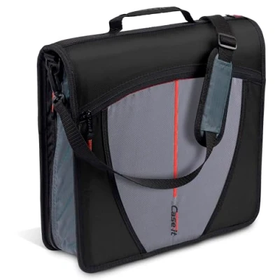 Case it Mighty Zip Tab Zipper Binder, 3" O Ring with 5 Color tabs, Expanding File Folder and Shoulder Strap Handle, D 146 Jet Black