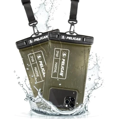 IP68 Certified Waterproof Protection: A 3.3 feet/1 meter IP68 certified professional floating waterproof phone pouch is perfect for swimming pools, beaches, kayaking, fishing, surfing, sailing, skiing, boating, snorkeling, tubing, rafting, showering, sauna, other water park activities and to store your ID; This waterproof pouch will keep your phone fully functional and 100% protected from the water making it one of the best cruise, vacation, and travel essentials/accessories to have (Best for Phone Screen Sizes Up to 6.1 Inches) Precise Design and Sensitive Touch: The Pelican Marine Series waterproof case has an innovative design for easy access to side buttons; Made with high-quality soft TPU material and a Clear Window design on the front for a delicate touch and quick response, making it easy to see videos and check your email Fully Protective: This waterproof phone pouch comes with a detachable cell phone lanyard that can be worn around your neck or wrist to easily access your phone or ID, allowing you to enjoy your adventures to the fullest; The Secure Lock Mechanism allows you to firmly lock and unlock the phone pouch, keeping it completely sealed underwater Underwater Photography: Take pictures anywhere, anytime! With the transparent material, you can have direct and proper access to the touch screen and camera; Sensitive touch allows you to use your phone as an underwater camera, to take sharp and clear photos and videos without removing your device from the waterproof phone bag Package Contents: 2 Units of Pelican Waterproof Phone Pouch Floating Case - Marine Series OD Green (Regular Size) + (2) Detachable Keychain Lanyards - Black; 1-Year Warranty