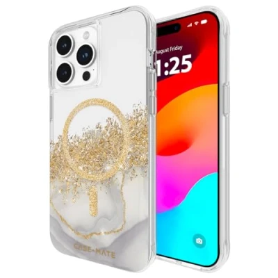 Karat Marble: This semi-opaque marble-designed case for iPhone 15 Pro Max with 24K gold karat accents lets the natural beauty of your device shine through and give a hint of luxury all while staying functional and protected; It has a flat surface with glitter embedded inside a clear resin case making it very easy to use and carry around 12ft Drop Protection: Superior impact and shock-absorbing materials with soft cushion corners are used in this protective case to safeguard your iPhone 15 Pro Max against drops, bumps, dirt, or scratches, providing reinforced 360-degree protection; Raised bezels around the corners add an extra layer of protection to your phone Recycled Materials: This phone case for iPhone 15 Pro Max is crafted using standard-certified recycled content, creating less demand for limited resources and reducing greenhouse gas emissions, all while maintaining trusted quality; The premium materials used in these iPhone cases offer long-term protection and keep it looking new every time you use it Compatible with Magsafe: This iPhone 15 Pro Max Phone Case comes with perfectly aligned built-in magnets that make wireless and magnetic charging faster and easier; It also works well with all MagSafe and iPhone accessories, such as wallets, battery packs, phone grips, car mounts, and more Package Contents: 1 Unit of Case-Mate iPhone 15 Pro Max Case - Karat Marble (fits New Apple iPhone 15 Pro Max 6.7 Inch 2023 only); Lifetime Warranty
