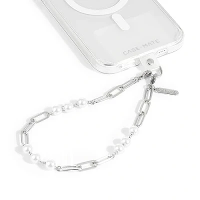 Case Mate Phone Charm with Beaded Silver Pearls Detachable Lanyard, Hands Free Wrist Strap, Adjustable Strap Grip for Women iPhone 15 Pro Max/ 14 13 12 Pearl