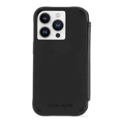 case Mate Wallet Genuine leather BookCase compatible with Apple iPhone 14 Pro [10ft drop protection Integrated magnetic ring incl. money and card slots Handmade leather] Black