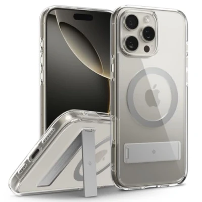 [Hidden Kickstand] Integrated seamlessly into the back, the built-in kickstand boasts a sleek design without protrusions, providing a hassle-free user experience; It fits perfectly and seamlessly with the case's back, ensuring compatibility with wireless charging and making it 100% wireless charging compatible for your iPhone [Stable and Comfortable View] The Capella Mag Metal Kickstand case for iPhone 16 Pro Max features a metal hinge with a kickstand, offering stability and supporting various viewing angles up to 60°; Tested in laboratories for durability, the metal hinge remains sturdy even after 10,000 uses, ensuring long-lasting convenience [Upgraded Protection] Designed with a PC and side TPU, the Capella Kickstand case provides stable and robust protection for your iPhone; To prevent watermarking, a dot pattern has been applied to key internal areas; Additional protection includes a front lip, rear camera guard, and Air Space Technology to strengthen corners [Clear & Neat Design] This sleek, transparent case perfectly complements your iPhone, showcasing your device's color while offering practical functionality; Express your unique style through the blend of transparency, color accents, and practical features [Compatibility] Only compatible with iPhone 16 Pro Max ensuring perfect alignment with the capture button, and compatible with wireless charging and MagSafe wireless charging