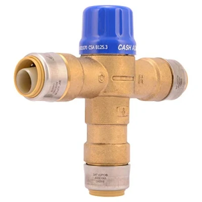 CASH ACME THERMOSTATIC MIXING VALVE: This Cash Acme Thermostatic Mixing Valve mixes hot water with cold to deliver tempered water at a controlled and safe temperature of 120 degrees F; ideal for working in tight spaces COMPATIBILITY: This mixing valve is compatible with SharkBite copper tubing, CTS, CPVC, SDR-9 HDPE, and PEX fittings DURABLE AND HIGH QUALITY: Mixing valves are composed of durable lead-free brass for long-lasting reliability EASY TO INSTALL: The innovative design of this thermostatic mixing valve allows for quick and easy installation, with no tools, crimping, glue, or soldering required; remove using a disconnect clip or disconnect tongs SPECS: Outlet temperature range is factory set at 120 degrees F and adjustable anywhere from 85 degrees to 130 degrees F to prevent scalding water temperatures, Weight: 1.776 pounds, Manufacturer: SharkBite
