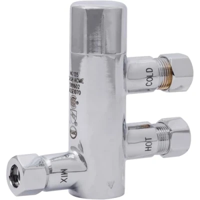 CASH ACME THERMOSTATIC MIXING VALVE: This Cash Acme Thermostatic Mixing Valve is a sleek and compact under-sink temperature mixing valve designed to help prevent scalding COMPATIBILITY: This mixing valve is compatible with SharkBite copper tubing, CTS, CPVC, SDR-9 HDPE, and PEX fittings DURABLE AND HIGH QUALITY: Mixing valves are composed of durable lead-free brass for long-lasting reliability EASY TO INSTALL: The innovative design of this thermostatic mixing valve allows for quick and easy installation, with no tools, crimping, glue, or soldering required; remove using a disconnect clip or disconnect tongs SPECS: Outlet temperature range is factory set at 120 degrees F and adjustable anywhere from 85 degrees to 130 degrees F to prevent scalding water temperatures, Weight: 6.25E-4 Pounds, Manufacturer: Cash Acme