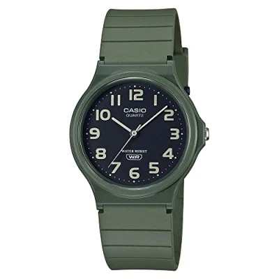 This fashionable and classic watch matches any outfit at any occasion,it adds style to your life High quality 19 cm length and 18 mm width Green Plastic strap with a Buckle Case diameter: 33 mm,case thickness: 8 mm, case colour: Green and dial colour: Black Water resistant: 3 bars Weight: 20 gr The watch is delivered in an original gift box and has a warranty of 2 years