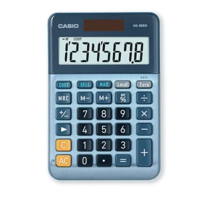 Casio Desktop Calculator MS 88EM 8 Digit Currency Conversion Cost/Sell/Margin Aluminium Front Solar/Battery Operated