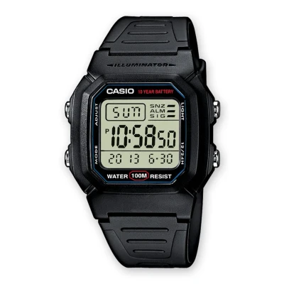 This Casio Casio Collection Digital Watch for Unisex is the perfect timepiece to wear or to gift. It's Black Rectangular case combined with the comfortable Black Plastic watch band will ensure you enjoy this stunning timepiece without any compromise. Operated by a high quality Quartz movement and water resistant to 10 bars, your watch will keep ticking. Precision, comfort, convenience - a good watch will give it all to you - perfect gift for any occasion -The watch has a calendar function: Day-Date-Month, Dual Time, Dual Time, Alarm, Alarm High quality 20 cm length and 18 mm width Black Resin strap with a Buckle Case diameter: 37x40 mm,case thickness: 13 mm, case colour: Black and dial colour: LCD