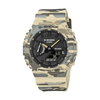 Casio G Shock 2100 Series Original Camouflage (45.4mm) Black Dial/Green Camo Resin Band GA 2100CM 5AER