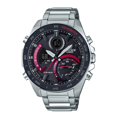 Casio Gents 48.00mm Solar Watch with Black Analogue Digital dial and Silver Metal Bracelet Strap ECB 900DB 1AER