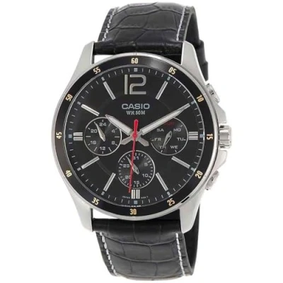 Casio Men Multifunctional cuarzo japonés Watch with Leather Strap MTP 1374L 1A