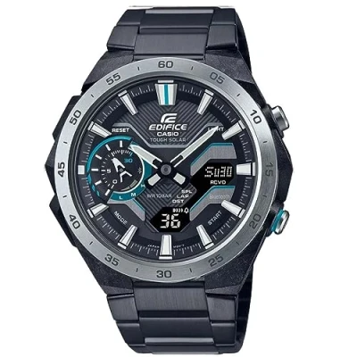 This Casio Edifice Analogue-Digital Watch for Men is the perfect timepiece to wear or to gift. It's Black 44 mm Round case combined with the comfortable Black Stainless steel watch band will ensure you enjoy this stunning timepiece without any compromise. Operated by a high quality Quartz movement and water resistant to 10 bars, your watch will keep ticking. This sporty and trendy watch is a perfect gift for New Year, birthday,valentine's day and so on. This Analogue-Digital watch has a Calendar function: Day-Date , Bluetooth , Solar Powered , Stop Watch , Worldtime and Countdown High quality 21 cm length and 24 mm width Black Stainless steel strap with a Fold over with push button clasp Case diameter: 44 mm,case thickness: 12 mm, case colour: Black and dial colour: Black
