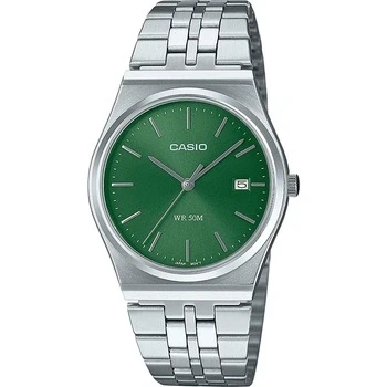 A classic with a colourful boost, this Casio Classic watch is a fantastic choice for any occasion. Designed with reliable quartz movement, this watch features a deep green dial with a five-link stainless steel bracelet strap, and a date display window. This watch is the perfect way to add a little colour to your style. Stainless Steel Deep green dial Date display window Dimensions: 40 x 35 x 7.4mm
