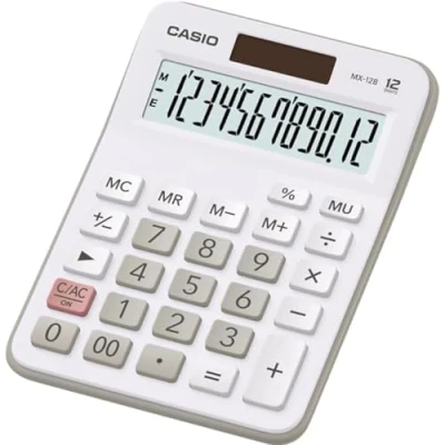 This basic desk model has a clear 12 Digit display & is easy to use. It is dual powered and performs the major basic functions: addition (extra big key), subtraction, multiplication and division & percentage.It also has a square root key and positive and negative number key. It also incorporates a 4-key memory function and a Mark up Key (MU).Other functions include:4 Key MemoryMark Up KeySquare Root Key% KeyDouble size + KeyChange Sign KeyLarge plastic keys