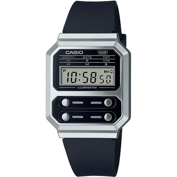 Casio Unisex 40.70mm Quartz Watch with Digital dial and Silver Metal Strap A100WEF 1AEF