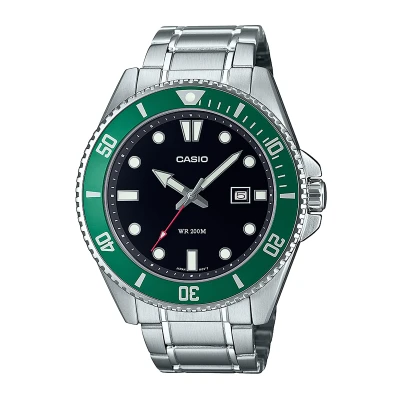 With an impressive water resistance of up to 200 meters, this Casio diver watch is not only stylish but also ready for action, whether you're engaging in ocean sports or enjoying marine activities. The unidirectional rotating bezel allows you to keep track of time spent underwater, while the screw-lock case back enhances durability, ensuring that you can rely on this watch in various environments.