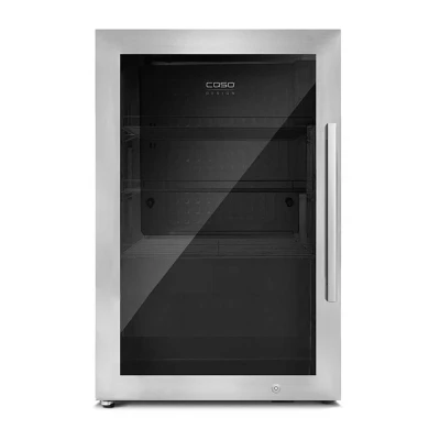 - This CASO drinks cooler has a generous 63-litre capacity, easily storing up to 30 beer bottles, wine or soft drinks - Thanks to the IPX-4 splash water protection, this cooler is ideal for covered terraces, sheds, or any indoor space - You can adjust the temperature from a super-chilled -1 to 10 ° to suit beer, soft drinks, or snacks- The switchable LED interior light and tinted UV safety glass door keep everything visible and protected- You can use it freestanding or as a built-in appliance in your outdoor kitchen or party cellar
