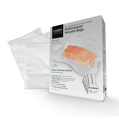 CASO Professional Foil Bags 25 x 35 cm / 50 for All Vacuum Sealers, BPA Free, Very Strong and Tear Resistant Approx. 150 µm, Aroma Proof, Boil Sous Vide, Reusable, Includes Food Manager