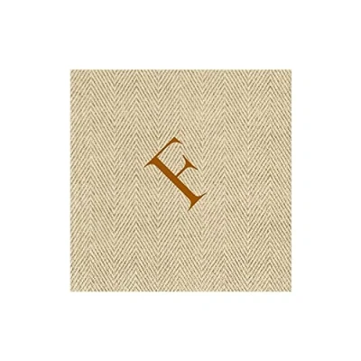 Caspari Jute Herringbone Paper Linen Monogram Initial F Cocktail Napkins, Pack of 30