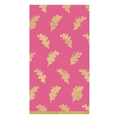Caspari Leaves of Gold Paper Guest Towel Napkins in Fuchsia, 15 Per Package
