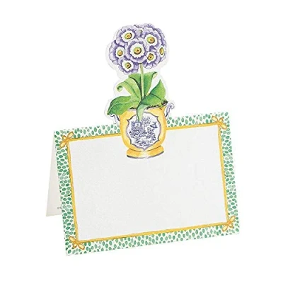 Designed with beautiful Caspari artwork to coordinate with our tabletop collections Printed on high-quality cardstock with die-cut design Includes 8 Die-Cut Place Cards Measures 9 x 9 cm Folds into a tent shape for upright table placement