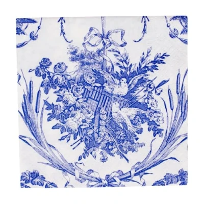 Caspari Romantic Toile Blue Cocktail Napkins 20 Per Package