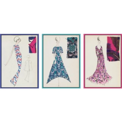 Scaasi boxed notecards by caspari - set of eight cards in three assorted designs with eight plain envelopes Printed on fine writing paper produced from managed forests Blank inside for your personalized message Reproduced from original works by celebrated Italian fashion designer Arnold Scaasi (b. 1930) on exhibit at the Boston Museum of Fine Art Cards measure 4 by 5 inches; packaged in a box with acetate lid