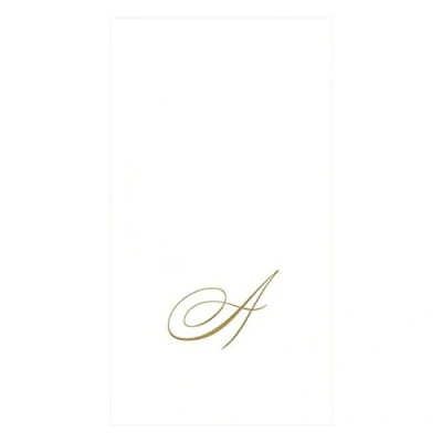 Caspari " Signature Gold Initial A Paper Linen Guest Towels, White Pearl, Pack of 24