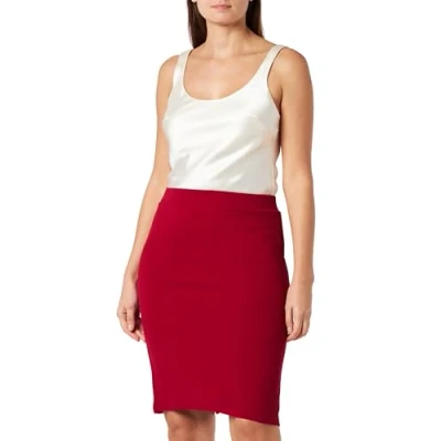 Figure-hugging pencil skirt Textured stretch fabric Zip on the back Pendant with rhinestone Feminine knee length