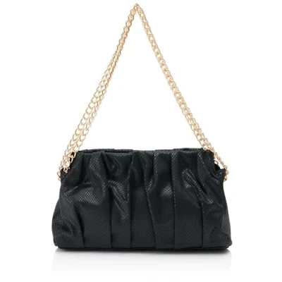 Elegant shoulder bag Made of soft material Spacious inner compartment Gold accents Reptile Embossing