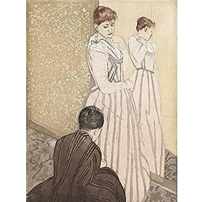 Cassatt The Fitting Dress Painting Art Print Canvas Premium Wall Decor Poster Mural