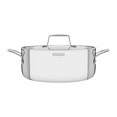 4.7 LITRE CASSEROLE DISH: Measuring 25 cm external diameter x 14.5 cm height x 33.7 cm length with handle. Ideal for soups, stews, boiling pasta and vegetables; item weight: 1.94 kg TRIPLE LAYER: Casserole dish featuring a triple layer construction (stainless steel + aluminium + stainless steel) for even heat distribution and more efficient cooking. DURABLE AND EASY TO CLEAN: Dishwasher safe or simply hand wash. Includes a lifetime warranty against manufacturing defects. OVEN PROOF & INDUCTION-READY: Suitable for all hob types including induction. High-quality and durable induction cooker pan, oven and stove safe (up to 260-degrees). DESIGN & STABLE HANDLES: Striking in appearance with clean contemporary lines, highly polished stainless steel exterior and stylish heavy-duty riveted handles for stability. Made in Brazil. EASY TO USE: Use on a low heat so that the food does not stick to the bottom of the pan. The triple construction distributes heat evenly so high heat is unnecessary.