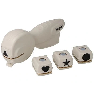 Punch for creating different shapes easily. To remove the cartridge, open the lid of the confetti tank located at the bottom of the die cutter. INCLUDED:; 1 Cassette Punch Die Cutter; 4 Cartridges of different designs