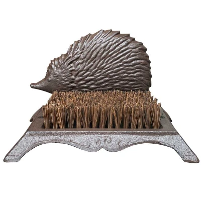 General description This decorative cast iron boot brush is both practical and attractive. In a vintage style, this boot and shoe scraper is made from durable cast iron and does not rust when left outside. The generous bristles are ideal for cleaning mud and debris off your footwear, and the decorative hedgehog motif adds a charming touch to this practical unit. Technical specifications Dimensions (LxWxH): 16cm x 25cm x 16cm Usage Bristle brushes to clean mud and debris off your footwear Simply hose down to keep clean
