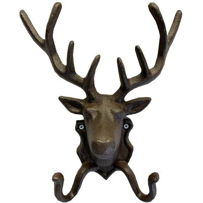 General description This impressive, wall-mounted cast iron coat hook features a proud stag with antlers. With an antique bronzed metal finish, this lovely hanger brings a taste of the highlands into any hall or cloakroom. Technical specifications Material: Cast iron Finish: Antique bronzed metal Installation Easy to install with two discreetly positioned screw holes (screws not included) Can be attached to an inside or outside wall Usage Ideal for storing coats, bags, leads, and tools Suitable for indoor and outdoor use Wall-mounted coat hanger