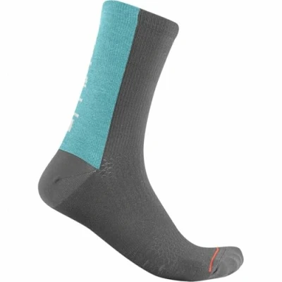 castelli Bandito Wool 18 Sock Unisex Adult Socks, unisex_adult, 4520540, Dark Gray Celeste, S/M