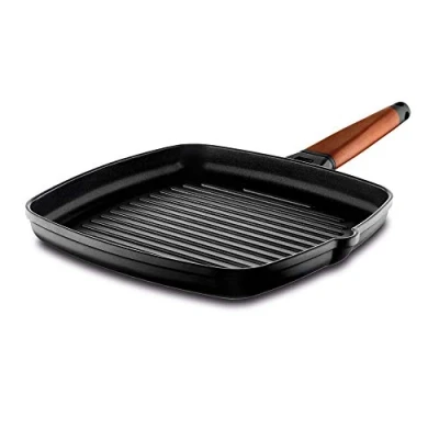 Castey 5 G22 Grill Frying Pan with Removable Wooden Handle, 22 x cm, Cast Aluminium and Wood, Multi Colour