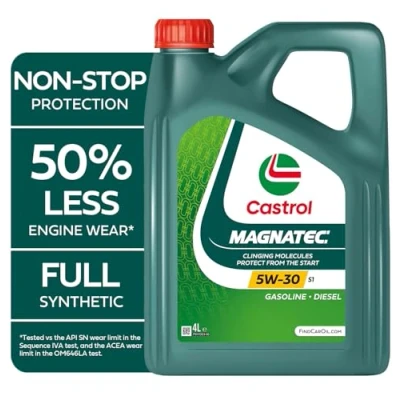 Product Performance Claims: ACEA C2 API SN Meets Fiat 9.55535-S1 Application: Castrol MAGNATEC 5W-30 S1 is suitable for use in automotive gasoline and diesel vehicles where the manufacturer recommends an ACEA C2, API SN or earlier specification 5W-30 lubricant. Castrol MAGNATEC STOP-START 5W-30 S1 is suitable for use in Fiat vehices that require a 5W-30 lubricant that Meets Fiat 9.55535-S1 specification. Up to 75% of engine wear happens while your engine warms up. When the engine stops, oils drain off critical engine parts, however Castrol MAGNATEC’s Intelligent Molecules don’t. They cling to the engine like a magnet providing an extra layer of protection. Castrol MAGNATEC’s Intelligent Molecules: 1. Cling to engine parts when the oil drains down 2. Adsorb to metal surfaces to make engine parts more resistant to wear 3. Are combined with synthetic technology to provide increased protection in high and low temperature applications 4. Provide continuous protection for different driving conditions, styles and temperatures Castrol MAGNATEC’s formulation protects from the moment you start, dramatically reducing engine wear*. Castrol MAGNATEC. Instant Protection From The Moment You Start.