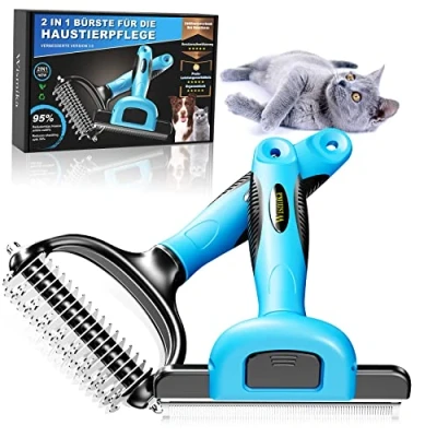 Cat Brush, Dog 2 in 1 Undercoat Brush for Medium and Long Hair, Professional or Stainless Steel Comb to Large Cats Dogs