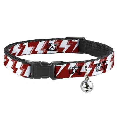 Cat Collar Breakaway Lightning Bolts Sketch Red White 8 to 12 Inches 0.5 Inch Wide