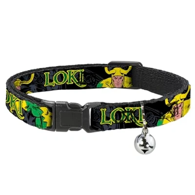 Cat Collar Breakaway Loki In Action Black Gray Yellow Green 8 to 12 Inches 0.5 Inch Wide