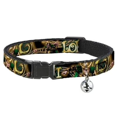Cat Collar Breakaway Loki Poses Black Gold Green 8 to 12 Inches 0.5 Inch Wide, Model: BAC WAV037 NM