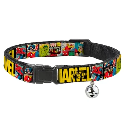 Breakaway cat collar fits 8-12" neck size and is 1/2 inch wide. This cat collar features beautiful, original artwork and durable components. The collar is made from high-density polyester and a plastic clip which is over engineered in thickness, ensuring it will hold up to whatever your pet can dish out. This product is handcrafted in the USA by Buckle-Down and is officially licensed by Marvel Comics. Matching leads/leashes available.